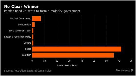 在澳大利亞,如果要成為多數(shù)黨組閣政府,需要在眾議會(huì)贏得76個(gè)席位。如果執(zhí)政的自由黨國(guó)家黨聯(lián)盟最后仍未能獲得國(guó)會(huì)議席的半數(shù),那么,兩大黨都需爭(zhēng)取獨(dú)立黨派的支持,以獲得組閣所需的76議席。或?qū)a(chǎn)生“懸浮議會(huì)”,即沒(méi)有任何政黨占多數(shù),大黨將不得不和小黨派討價(jià)還價(jià)、組成聯(lián)合政府。如不成功,將有重新選舉的可能。