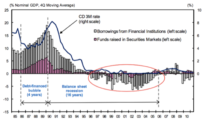 圖:日本90年代的資產(chǎn)負(fù)債表衰退