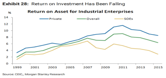 圖:中國(guó)工業(yè)企業(yè)的資產(chǎn)回報(bào)率