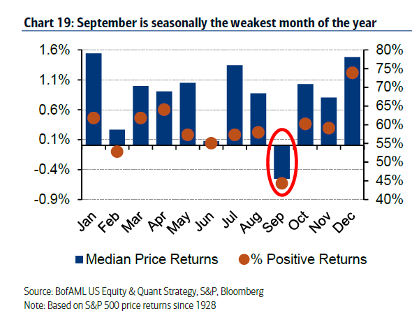 需要提醒的是,9月并不是什么豐收的時節(jié),按照美銀美林美股與量化策略團隊負責人Savita Subramanian的統(tǒng)計,自1928年以來,標普500指數(shù)在9月的回報率中值為負,是12個月當中唯一一個負收益率的月份。所以美股投資者請系好安全帶。