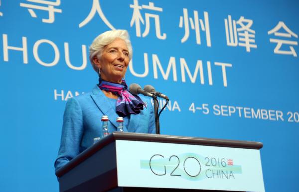 2016年9月5日,浙江杭州,國際貨幣基金組織(IMF)總裁拉加德出席新聞發(fā)布會。