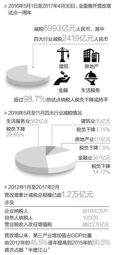 營改增全面推開試點一年減稅近7000億元