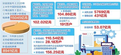 報(bào)告顯示,上半年,全國(guó)累計(jì)新增減稅降費(fèi)15045億元。其中,今年新出臺(tái)的支持疫情防控和經(jīng)濟(jì)社會(huì)發(fā)展的政策措施新增減稅降費(fèi)8941億元,2019年已出臺(tái)政策在2020年翹尾新增減稅降費(fèi)6104億元,有效對(duì)沖了疫情影響,對(duì)紓解企業(yè)困難、支持復(fù)工復(fù)產(chǎn)和經(jīng)濟(jì)平穩(wěn)運(yùn)行發(fā)揮了重要作用。