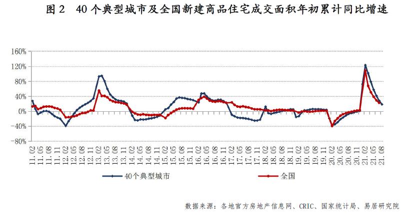 報告顯示,2021年8月,易居研究院監(jiān)測的40個典型城市新建商品住宅成交面積為2324.9萬平方米,環(huán)比下降13.6%,同比大跌31.0%。自5月年內首次同比增速轉負以來,新建商品住宅成交量已連續(xù)3個月同比下降。