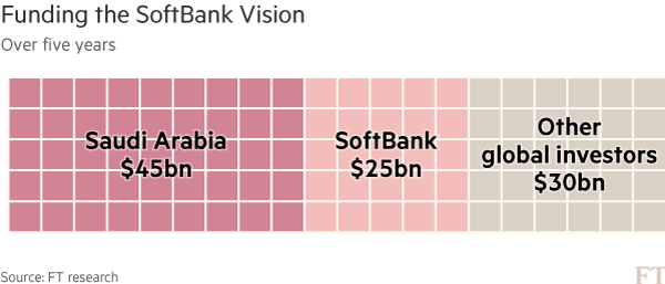 現(xiàn)在已經(jīng)落實到紙面上的是一項非約束性協(xié)議,約定在倫敦建立一個軟銀分支機(jī)構(gòu)。在接下來5年中,沙特承諾對該基金注資最多450億美元,而軟銀承諾至少注資250億美元。雙方正尋求從“幾個大型全球投資者”那里募集另外300億美元的資金。