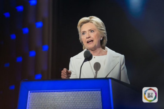 7月28日,在美國(guó)賓夕法尼亞州費(fèi)城舉行的民主黨全國(guó)代表大會(huì)上,民主黨總統(tǒng)候選人希拉里·克林頓發(fā)表演講。 (新華社記者李木子攝)
