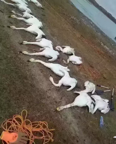 10月23日下午,有微博網(wǎng)友發(fā)帖稱,內(nèi)蒙古自治區(qū)錫林郭勒盟正藍(lán)旗天鵝湖畔,有數(shù)百只天鵝被殺。