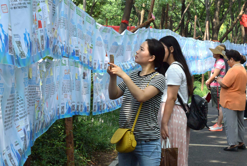 8月9日,一名市民在濟南千佛山公園舉行的“七月七相親大會”上用手機記錄相親信息