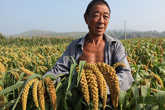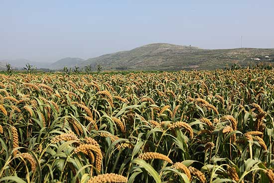 8月23日,山東省臨沂市平邑縣黃草坡村的有機(jī)谷子豐收在望。