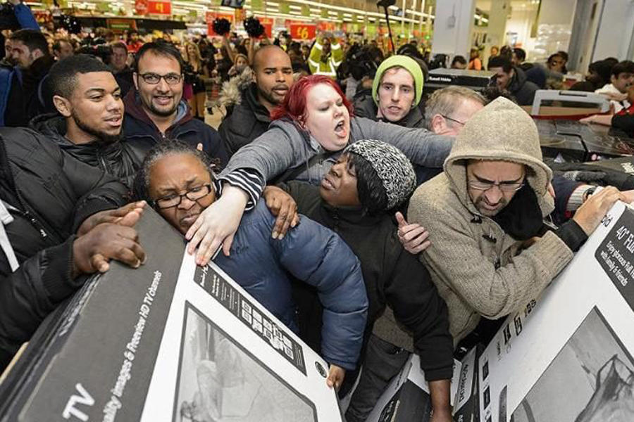 一年一度的黑色星期五購物季又來了?!昂谖濉弊钤缙鹪从诿绹?,它是指每年感恩節(jié)之后的第一天,即11月的第四個星期五。這一天,美國各大商場都會推出大量的打折促銷優(yōu)惠活動。只要商場一開門,消費者跟瘋了一樣往里沖。