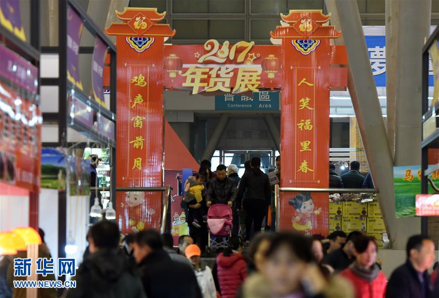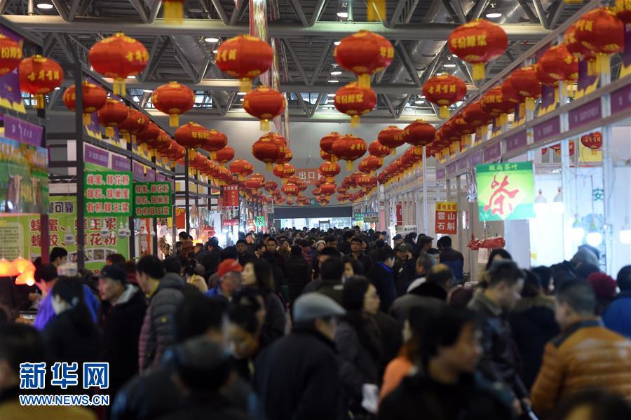 1月8日,合肥市安徽國(guó)際會(huì)展中心內(nèi),市民們?cè)诤戏适械诰艑媚曦浌?jié)上選購年貨。臨近新春,安徽省合肥市第九屆年貨節(jié)從1月7日開始了為期17天的年貨展銷。不少合肥市民選擇到年貨節(jié)里“淘”年貨,為即將到來的新春佳節(jié)做準(zhǔn)備。新華社記者 郭晨 攝