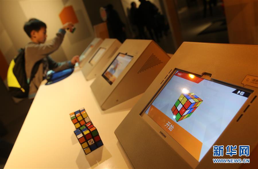 2月8日,一名小觀眾在展館內(nèi)學(xué)習(xí)如何玩魔方。近日,由魔方之父厄爾諾·魯比克參與打造的“超越魔方”科技互動(dòng)展覽在上海環(huán)球港博物館舉辦,24件創(chuàng)意交互展品讓觀眾充分體驗(yàn)了魔方的魅力以及魔方在藝術(shù)、時(shí)尚、科技、設(shè)計(jì)等領(lǐng)域的跨界影響力。新華社記者裴鑫攝