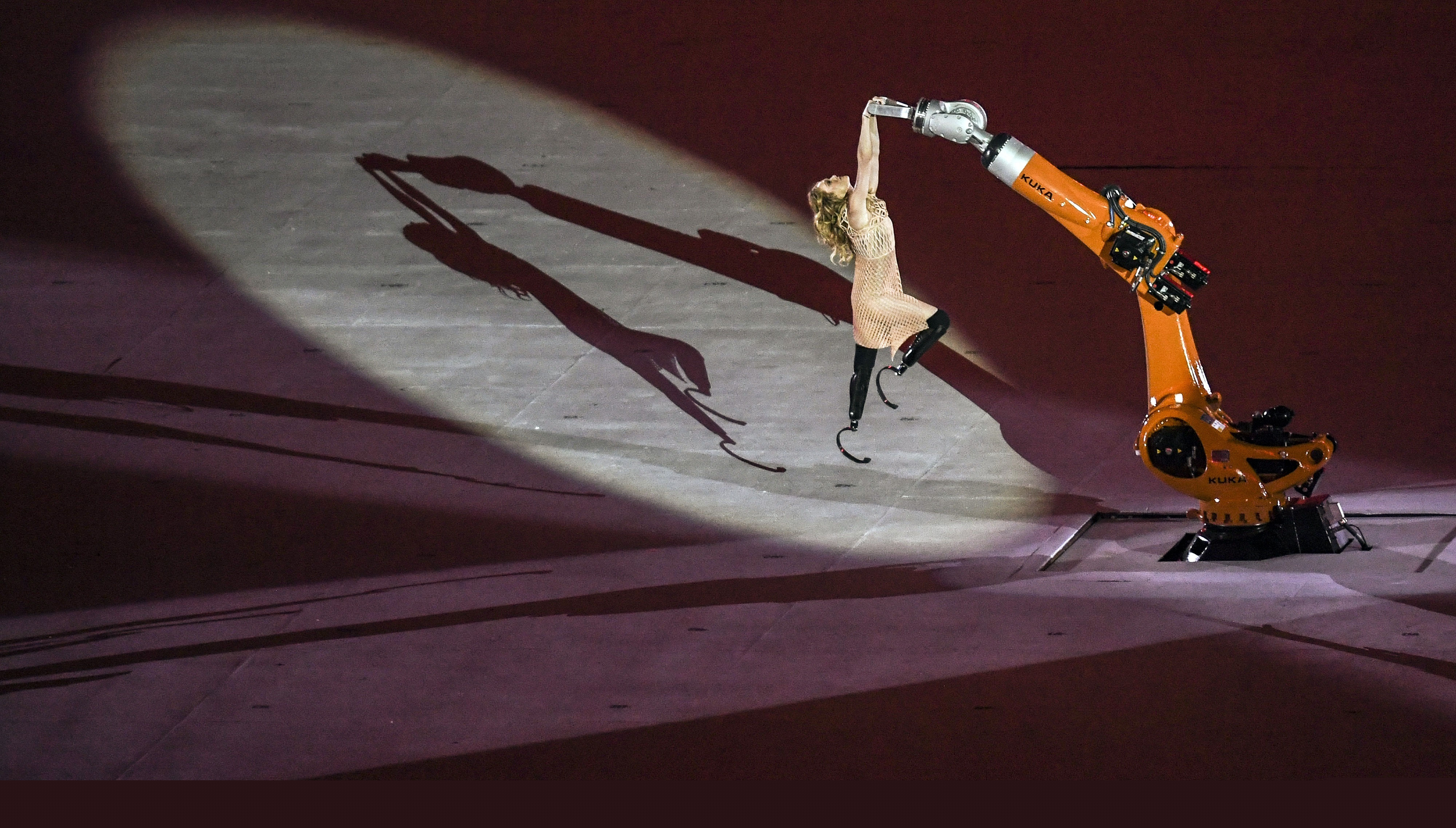 殘疾人舞蹈演員珀迪與機(jī)器人共舞