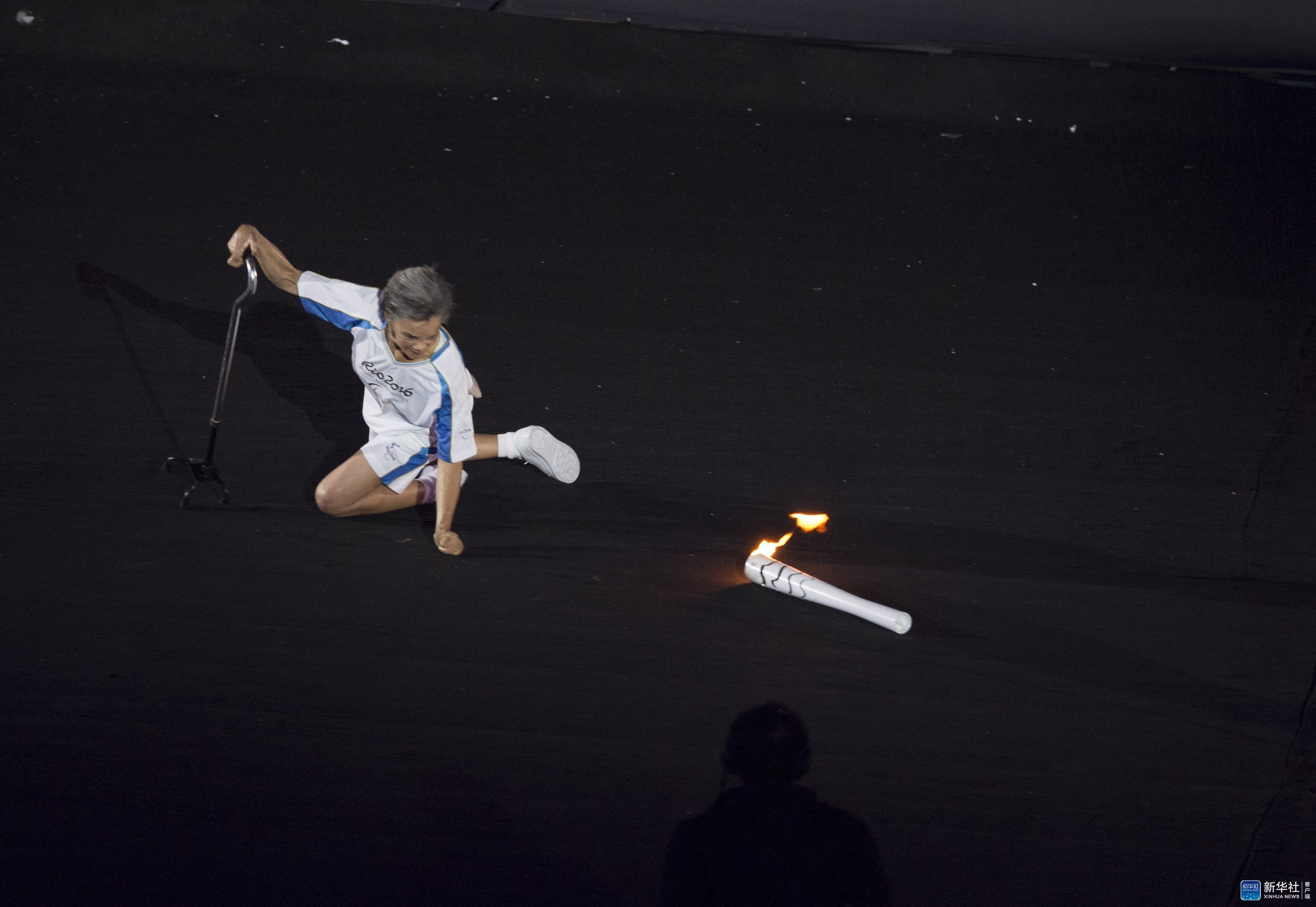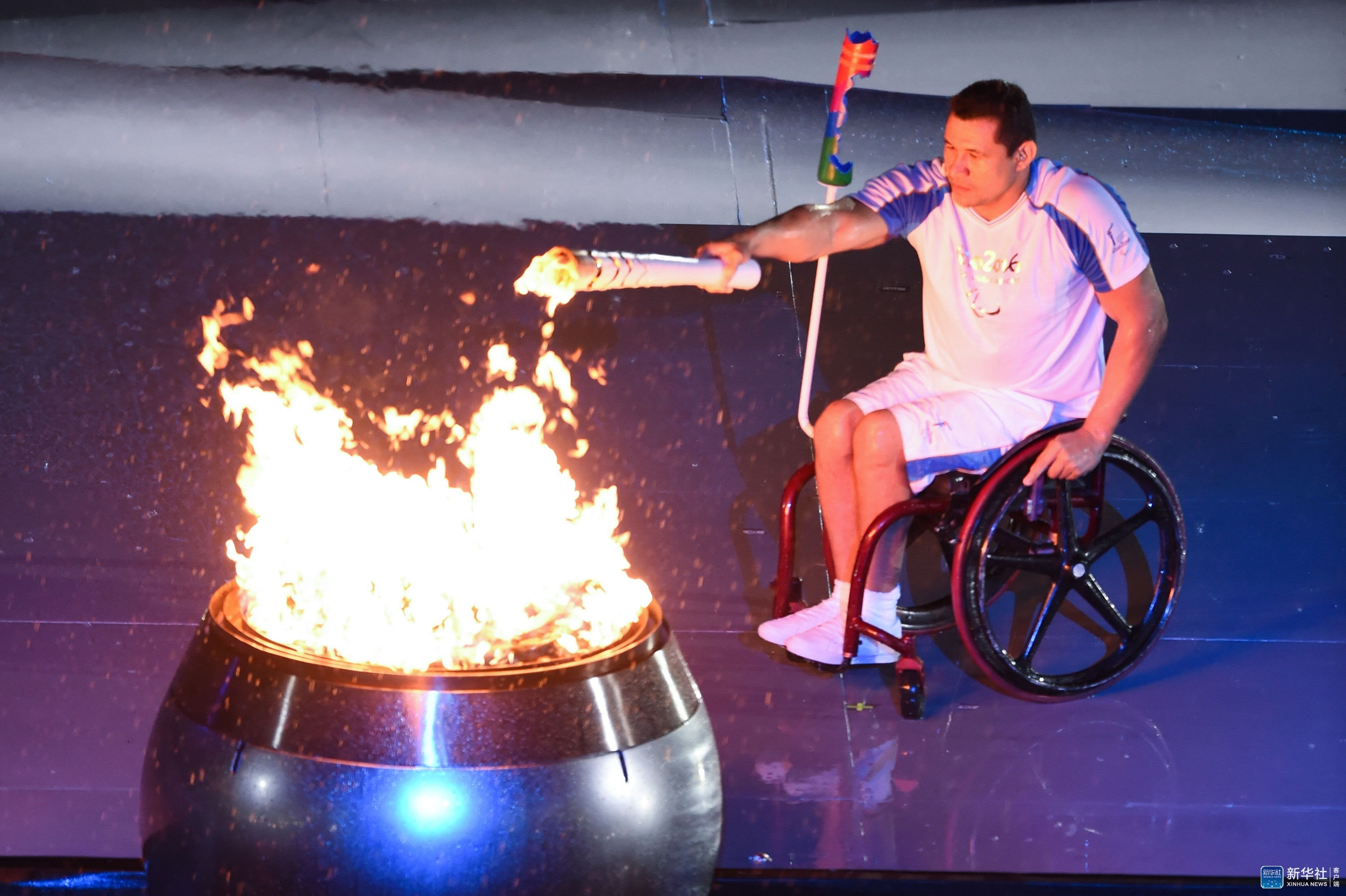 巴西殘疾人游泳運(yùn)動(dòng)員席爾瓦點(diǎn)燃主火炬