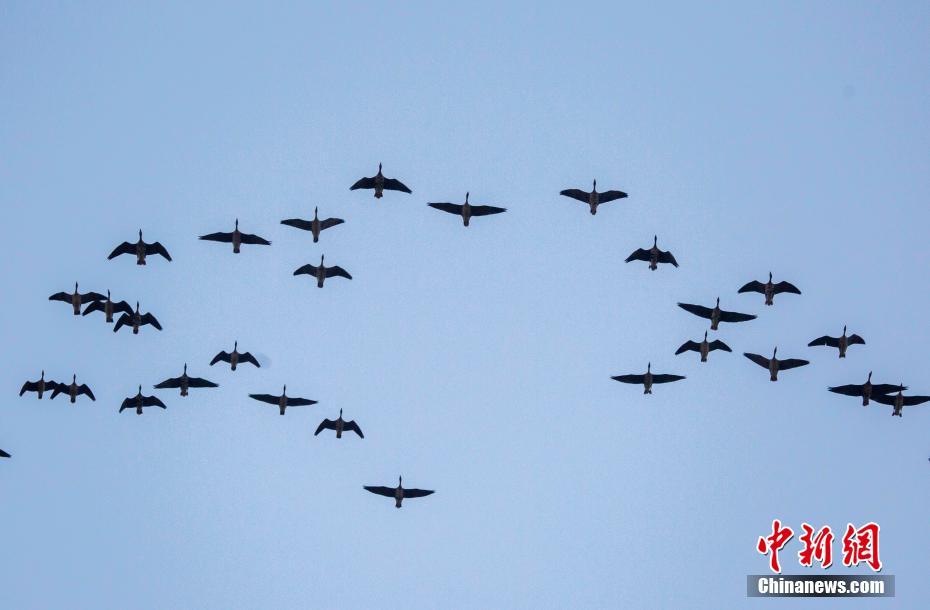 10月10日,大批冬候鳥(niǎo)飛抵江西鄱陽(yáng)湖都昌馬影湖候鳥(niǎo)保護(hù)區(qū)。江西鄱陽(yáng)湖都昌候鳥(niǎo)自然保護(hù)區(qū)核心區(qū)日前監(jiān)測(cè)到3000多只豆雁、鴻雁等冬候鳥(niǎo),標(biāo)志著候鳥(niǎo)遷徙大潮即將來(lái)臨。江西都昌候鳥(niǎo)省級(jí)自然保護(hù)區(qū)位于都昌縣南部的鄱陽(yáng)湖區(qū),總面積411平方公里。受鄱陽(yáng)湖今秋低水位影響,鄱陽(yáng)湖生物資源衰退,越冬候鳥(niǎo)覓食或?qū)⑹艿酵{。鄱陽(yáng)湖是中國(guó)最大淡水湖,同時(shí)也是國(guó)際重要濕地、亞洲最大的越冬候鳥(niǎo)棲息地。傅建斌 攝