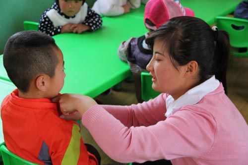 走教教師安敏在給幼兒園小朋友上課(攝影 申寧)