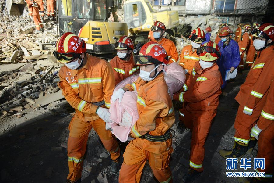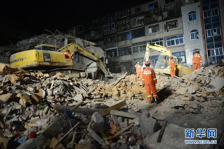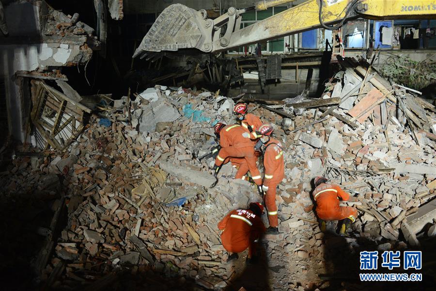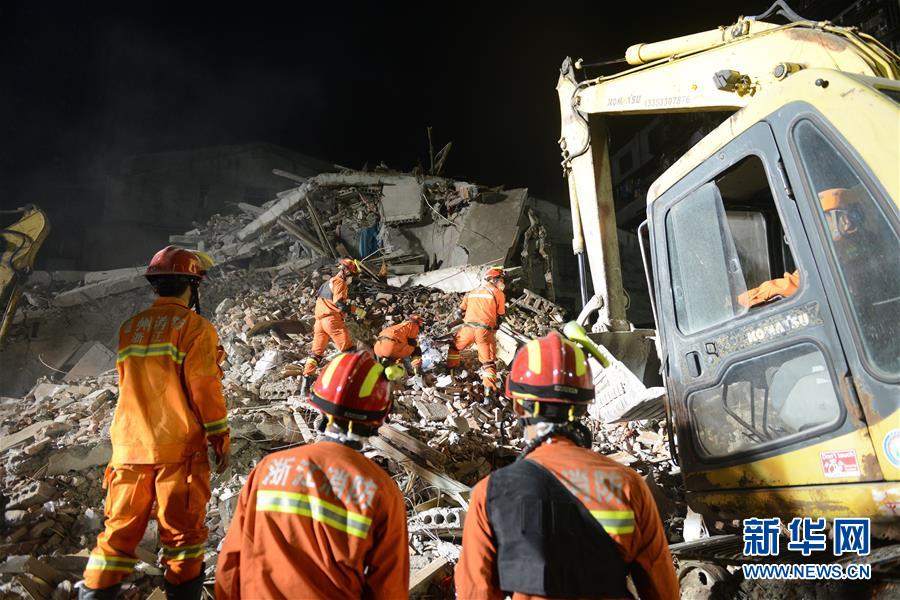 10月10日深夜,救援人員抬出遇難者遺體。記者10月11日凌晨從溫州市鹿城區(qū)相關(guān)部門獲悉,鹿城區(qū)雙嶼街道民房倒塌現(xiàn)場救援工作已基本結(jié)束,目前事故共造成22死6傷。 新華社發(fā)