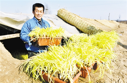 1月17日,記者走進(jìn)華北平原中部的河北省深州市西安莊村,一排排半地下式的溫室大棚映入眼簾,掀開厚厚的布簾進(jìn)入棚內(nèi),只見一片片鮮嫩的無公害黃韭長勢喜人、韭香撲鼻,不少村民正在收割、打捆、裝箱。同時(shí),很多村民將黃韭栽入特制的花盆內(nèi),做成了獨(dú)具特色的盆景黃韭。