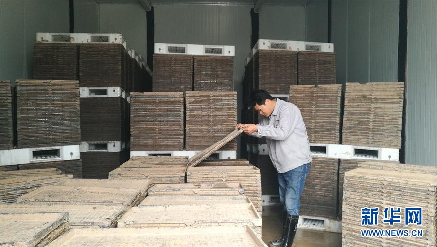 在湖南省衡陽(yáng)縣富農(nóng)優(yōu)質(zhì)稻種植專業(yè)合作社的“暗室疊盆智能育秧車間”,工人在查看種子催芽情況(3月31日攝)。?