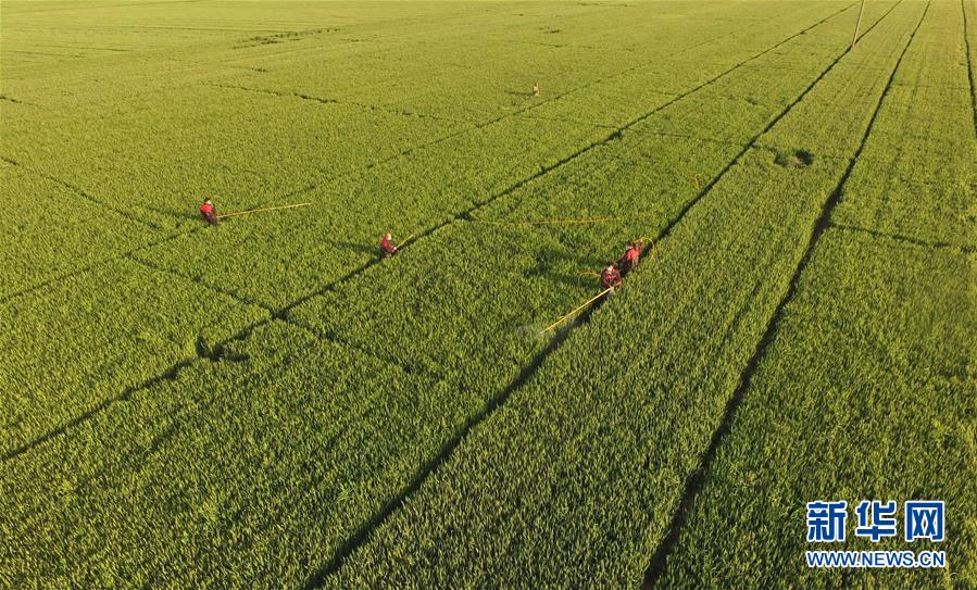 5月7日,河北省臨西縣富強(qiáng)農(nóng)業(yè)合作社的農(nóng)民在麥田里噴灑農(nóng)藥預(yù)防蟲害。時下,河北省中南部地區(qū)的冬小麥進(jìn)入抽穗、灌漿期,各地農(nóng)業(yè)部門積極指導(dǎo)農(nóng)民做好“一噴三防”工作,為夏糧豐收打下堅實的基礎(chǔ)。新華社記者 楊世堯 攝