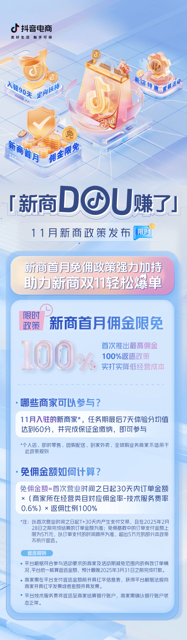 扶持加碼新商首月傭金限免,11月抖音電商新商三大政策限時發(fā)布!