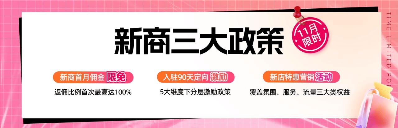 「入駐90天定向激勵」是雙11頭商加碼/商家自播/好貨上新/達(dá)人合作/貨架經(jīng)營5大維度下分層激勵政策,通過任務(wù)+權(quán)益激勵的方式助力新商在入駐后90天內(nèi)能提升運(yùn)營能力、獲取更多流量、快速成交出單;「新店特惠營銷活動」是覆蓋氛圍、服務(wù)、流量三大類權(quán)益的“新店特惠”定制化營銷活動,為新商量身打造長期營銷陣地,幫助商家快速提升冷啟成長進(jìn)程。