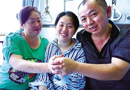 曾經(jīng)的一家三口2015年7月,楊丹的父母鼓勵她戰(zhàn)勝病魔。