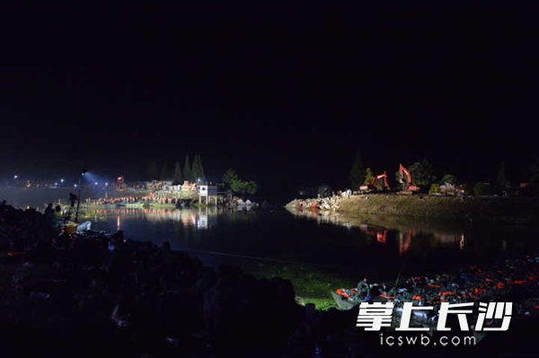今日凌晨0時(shí)20分,華容縣新華垸大堤燈光閃亮,救援工作正緊張進(jìn)行