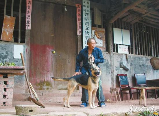 71歲的廖和軍和一條狼狗,共同守護(hù)著這處省級文物保護(hù)單位3年有余,“我吃啥,狗就吃啥?!绷魏蛙娬f,這位特殊的“同事”,冬天就會胖回來。