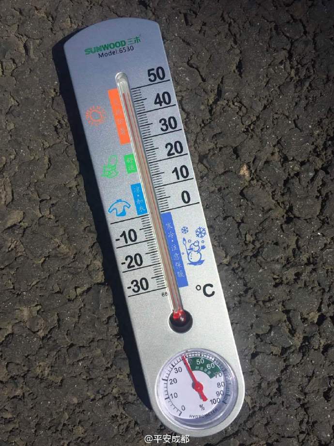 據(jù)華西都市報微博消息,2016年7月21日中午11點,成都某高速公路治安卡點的地表溫度已接近50℃,一位執(zhí)勤中的交警中暑暈倒。