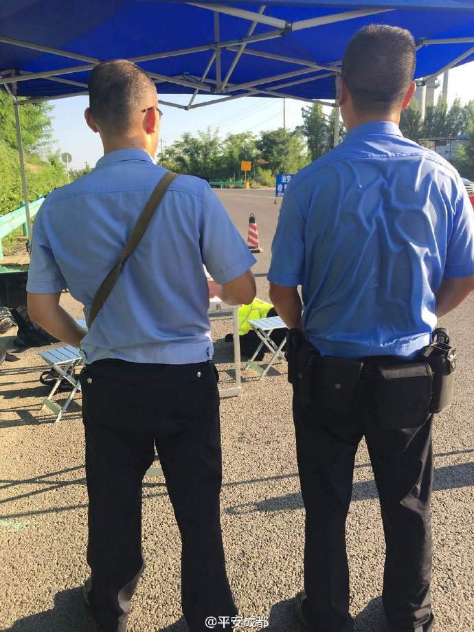 21日,成都市公安局官方微博@平安成都 發(fā)布兩張照片,配文稱“11時許,成都,城南高速治安卡點,過多的話都顯蒼白”。