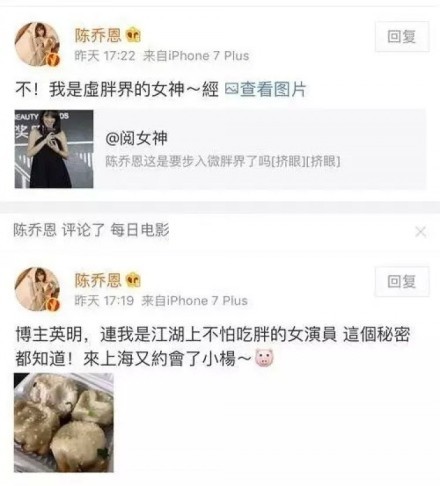 面對質(zhì)疑,開朗的喬恩自黑說“博主英明,連我是江湖上不怕吃胖的女演員這個秘密都知道!”
