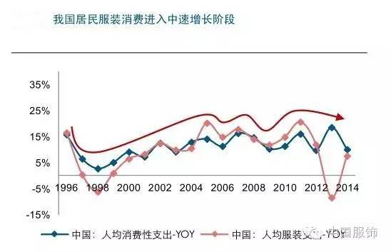 在接受采訪時,一些業(yè)內(nèi)人士也表示,目前紡織服裝、服飾業(yè)尚處于調(diào)整階段、行業(yè)整體對未來的預期不甚樂觀,外延擴張趨于謹慎、整體經(jīng)營思路偏向于通過降成本增效率實現(xiàn)內(nèi)生增長。在新常態(tài)的背景下,GDP增速和居民收入增速放緩以及服裝消費習慣逐步成熟,我國的服飾類消費亦將進入中速增長階段。
