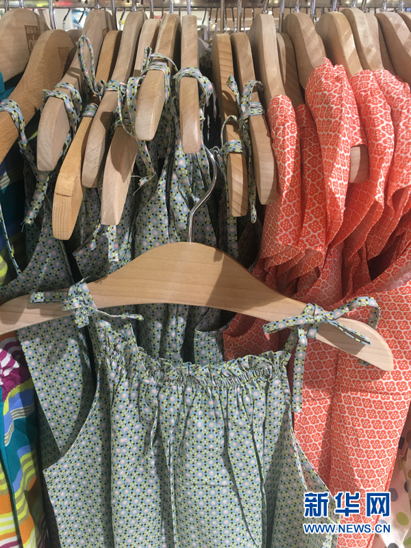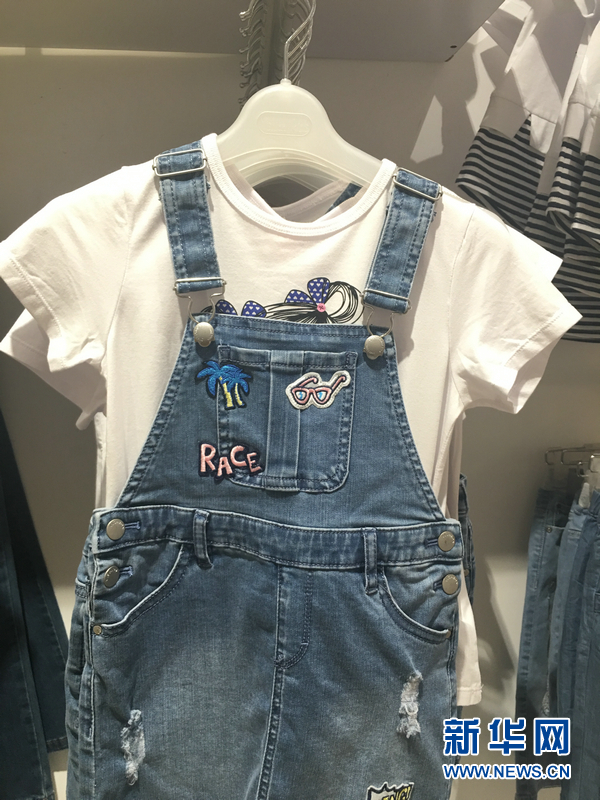 某快時尚品牌專賣店內(nèi),一件女童背帶裙掛在顯眼位置