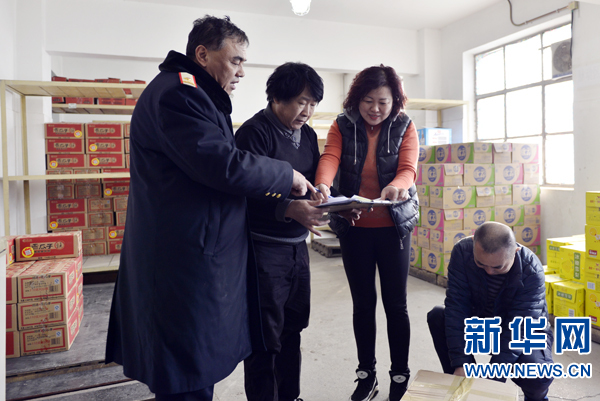 王金良在旅服車間餐料庫房清點(diǎn)餐料數(shù)目。