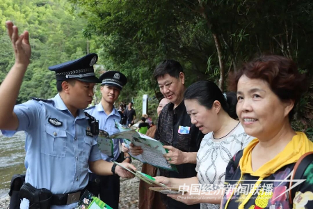 舉安全之盾,防事故之患?!熬瘎?wù)室民輔警會(huì)常態(tài)化針對(duì)景區(qū)內(nèi)安全防護(hù)裝置開展檢查,同時(shí)對(duì)洋面、棧道、拍照打卡點(diǎn)等高風(fēng)險(xiǎn)隱患點(diǎn)開展‘地毯式’排查治理,針對(duì)發(fā)現(xiàn)的問題,面對(duì)面指導(dǎo)、點(diǎn)對(duì)點(diǎn)督促相關(guān)部門落實(shí)安全主體責(zé)任完成整改,及時(shí)消除各類風(fēng)險(xiǎn)隱患。”陳祥柘說。同時(shí),為給游客提供安全舒心的游玩環(huán)境,警務(wù)室民警詳細(xì)記錄景區(qū)內(nèi)商鋪信息,定期上門檢查排查安全隱患,向商鋪人員及旅客進(jìn)行森林防火、禁毒知識(shí)普法宣傳。