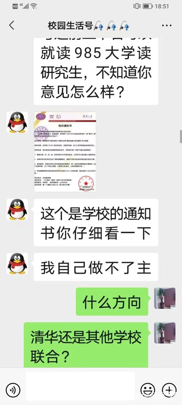 這時,“女兒”表明自己是因?yàn)閷W(xué)校上微機(jī)課不讓帶手機(jī),自己又有急事想要聯(lián)系蘇女士,所以使用學(xué)校電腦申請的學(xué)習(xí)號來添加蘇女士。聊天過程中,“女兒”告知蘇女士,學(xué)校近期邀請到知名大學(xué)教授來校培訓(xùn),稱這次培訓(xùn)對現(xiàn)期的學(xué)習(xí),以及未來考編、讀研都有很大幫助。同時,還說明此次培訓(xùn)結(jié)束考進(jìn)前三十名的可以上985大學(xué)讀研究生。