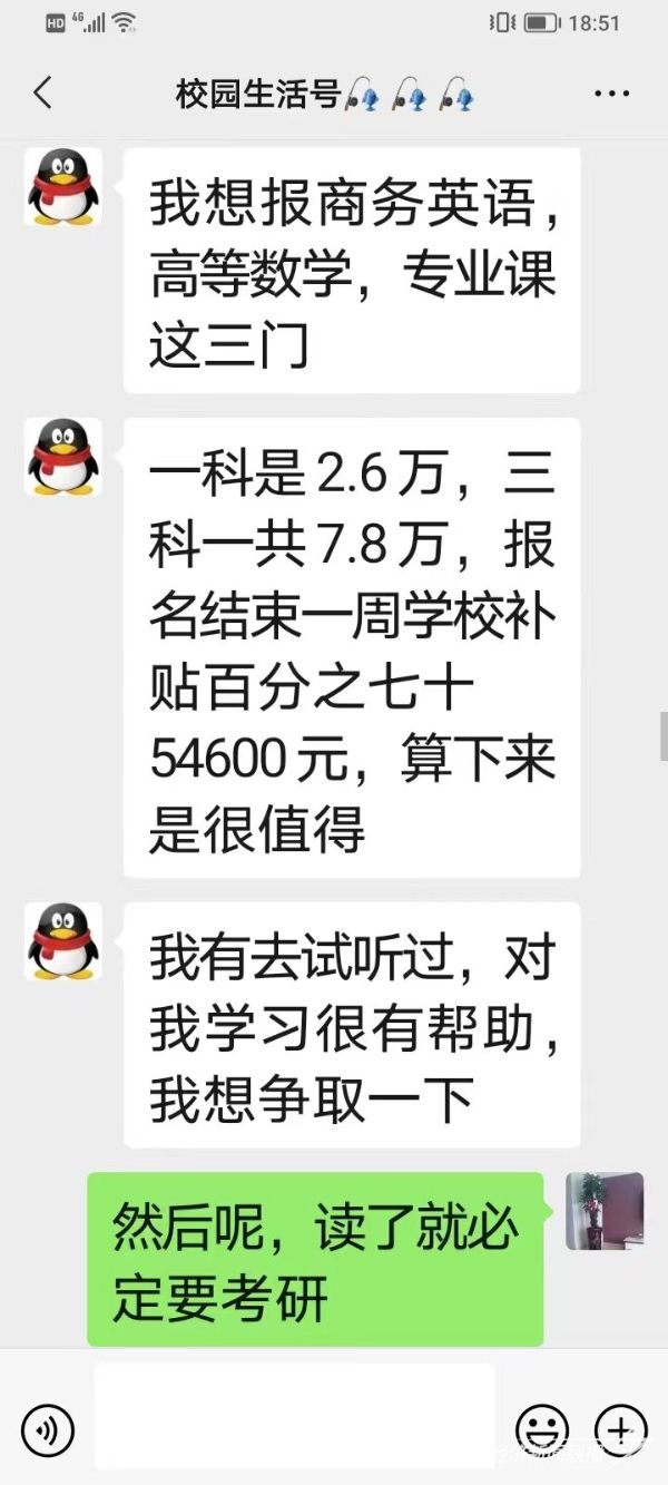 這時蘇女士猶豫了,她覺得自家孩子好學(xué)是好事,參加培訓(xùn)也算是對女兒未來發(fā)展的良性投資,但培訓(xùn)費(fèi)用及課程內(nèi)容還不十分了解,于是建議女兒要結(jié)合未來的一個職業(yè)規(guī)劃、發(fā)展方向等再慎重考慮,但因女兒仍在上課,蘇女士便沒有與“女兒”在微信上繼續(xù)討論。