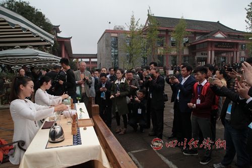 在當(dāng)日下午舉行的中國(名山)茶鄉(xiāng)旅游發(fā)展研討會上,雅安市名山區(qū)副區(qū)長王欣分享了名山區(qū)茶產(chǎn)業(yè)鏈旅游化的經(jīng)驗。