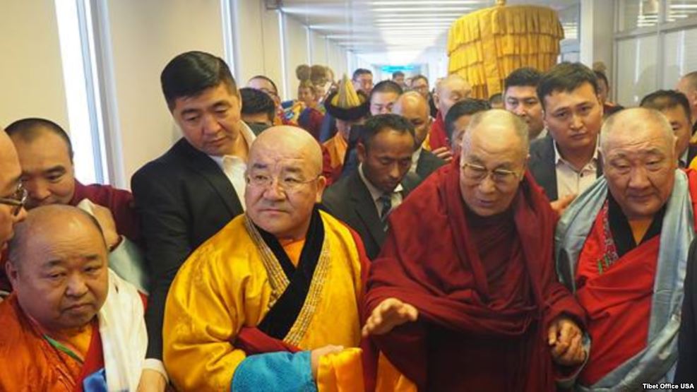 據蒙古通訊社報道,十四世達賴已于當地時間星期五(11月18日)下午抵達烏蘭巴托國際機場,開始為期四天訪問。達賴在機場受到蒙古佛教界的歡迎。