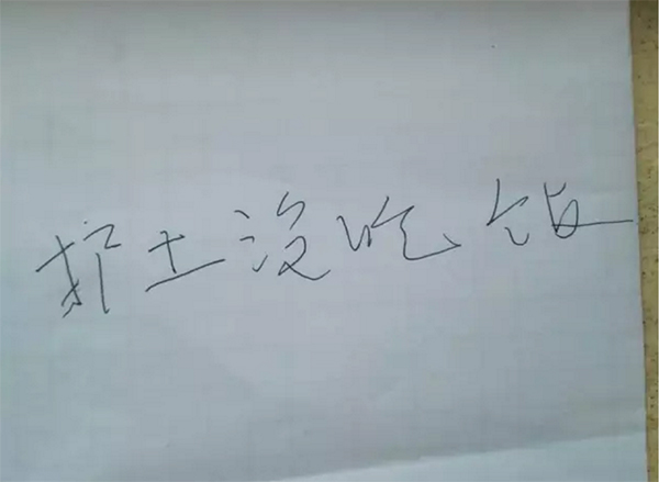 田夢園似乎理解了老人的意圖,把筆和紙遞到了老人的手里,老人隨后用顫顫巍巍的手寫出了“護(hù)士沒吃飯”五個(gè)字。