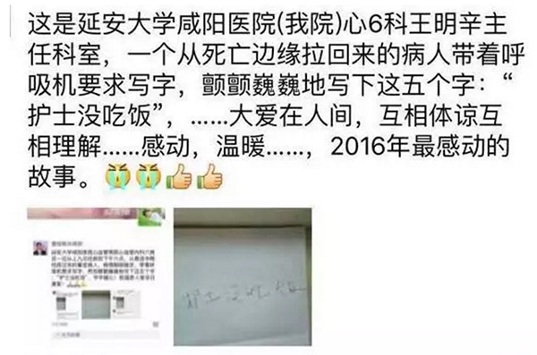 在不少延安大學(xué)咸陽醫(yī)院的醫(yī)護(hù)人員看來,這件小事在醫(yī)患關(guān)系緊張的今日更顯難能可貴。