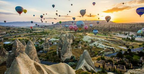 卡帕多西亞以其童話般的斑點巖層而聞名:奇特的巖石構造、巖洞和半隱居人群的歷史遺跡令人神往。這里起初是基督教徒躲避羅馬迫害的避難處,公元4世紀,一群僧侶建立了卡帕多西亞的主要部分。游覽這里的最佳交通工具是熱氣球。