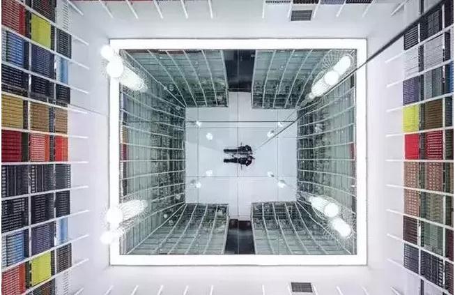 鐘書閣仿歐式殿堂的正門毫不突兀地融入街景,高高矗立的飛檐與“鐘書閣”中文銘牌又使它氣勢(shì)十足地顯出自身的存在,兩側(cè)的玻璃幕墻上鐫繪著來自世界各國(guó)書本里的精選段落。二層的空間呈“回”字形分布,回字形的中心是二層的設(shè)計(jì)主題“天堂閱讀”的體現(xiàn)之處,空間正中的立柱鑲嵌著鏡子。鐘書閣二期的中央閱讀博物館里,你會(huì)看見許多倒置的臺(tái)燈懸在如宮殿般的拱形書籍空間中,正如我們?nèi)绨V如醉般沉浸在閱讀中一樣,忘了何處,忘了時(shí)間。