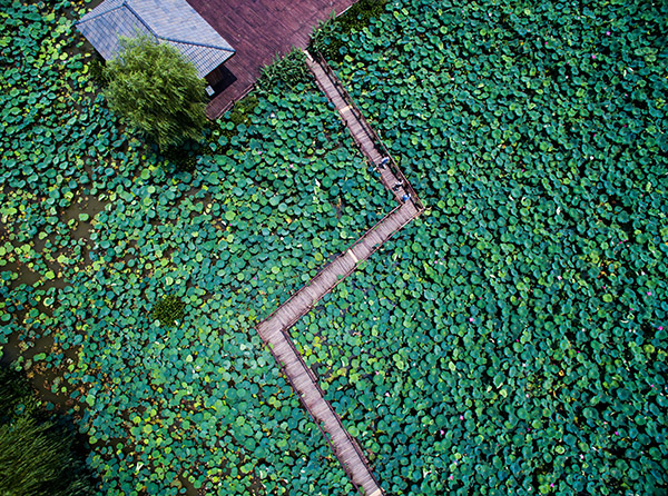 7月13日,游客在呂山鄉(xiāng)的荷花博覽園內(nèi)賞荷。