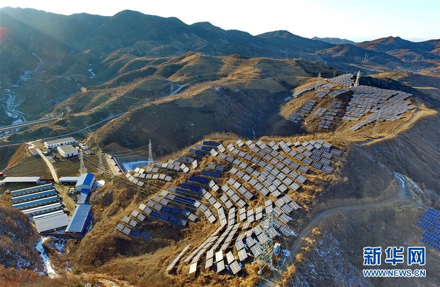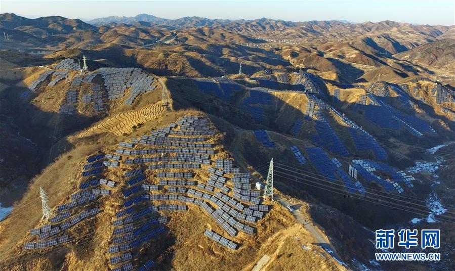 俯瞰河北省秦皇島市青龍滿族自治縣隔河頭光伏發(fā)電場(chǎng)(2月12日攝)。記者從國(guó)家電網(wǎng)冀北公司獲悉,截至2016年底,河北省張家口、承德、秦皇島和唐山等冀北地區(qū)的風(fēng)電、太陽(yáng)能發(fā)電等新能源并網(wǎng)容量達(dá)到1281萬(wàn)千瓦,占統(tǒng)調(diào)裝機(jī)容量的51%。新華社記者 楊世堯 攝