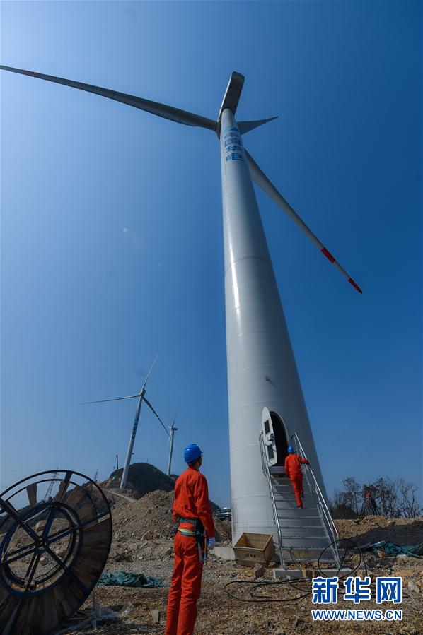 3月15日,位于浙江省長(zhǎng)興縣的華電紅山風(fēng)電場(chǎng)一期11臺(tái)風(fēng)力發(fā)電機(jī)組正式并網(wǎng)發(fā)電,該風(fēng)力發(fā)電場(chǎng)也是浙北規(guī)模最大的低風(fēng)速風(fēng)電場(chǎng)。據(jù)悉,浙江省長(zhǎng)興縣華電紅山風(fēng)電場(chǎng)總投資約6億元,風(fēng)機(jī)采用全球領(lǐng)先的低風(fēng)速發(fā)電技術(shù),建成后共有24臺(tái)風(fēng)力發(fā)電機(jī)組,裝機(jī)總?cè)萘窟_(dá)53兆瓦,每年可提供上網(wǎng)電量超過(guò)1億千瓦時(shí),所發(fā)綠色清潔能源全部并入長(zhǎng)興當(dāng)?shù)仉娋W(wǎng),流向千家萬(wàn)戶(hù)。據(jù)統(tǒng)計(jì),該風(fēng)電場(chǎng)每年可節(jié)約標(biāo)煤燃燒40萬(wàn)噸,減少排放煙塵7000噸、二氧化碳154萬(wàn)噸、二氧化硫6000噸,為保護(hù)當(dāng)?shù)厣鷳B(tài)環(huán)境,促進(jìn)地方經(jīng)濟(jì)社會(huì)的發(fā)展和加快節(jié)能減排方面作出重要貢獻(xiàn)。新華社記者 徐昱 攝