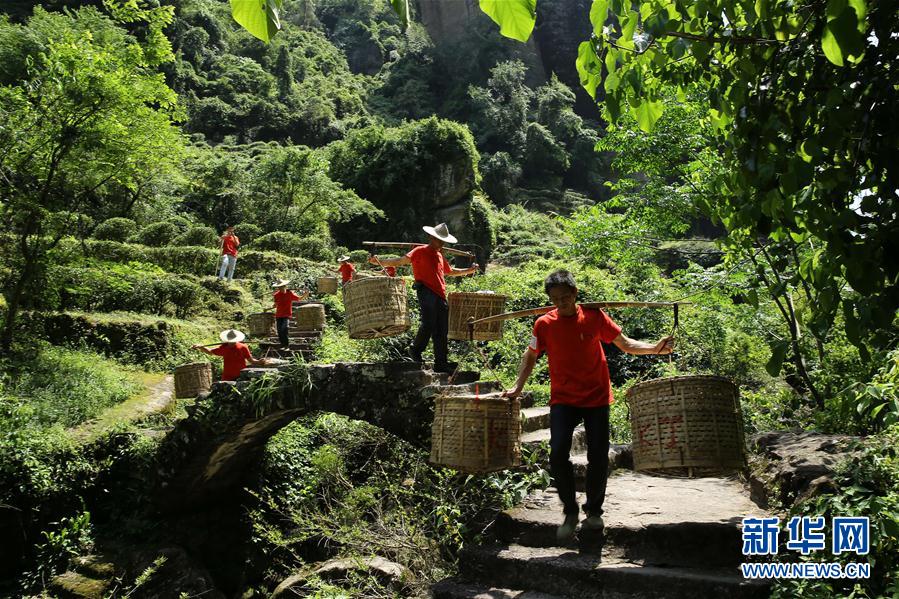 5月9日,福建省武夷山市天心村茶農(nóng)挑運(yùn)采摘的武夷巖茶。