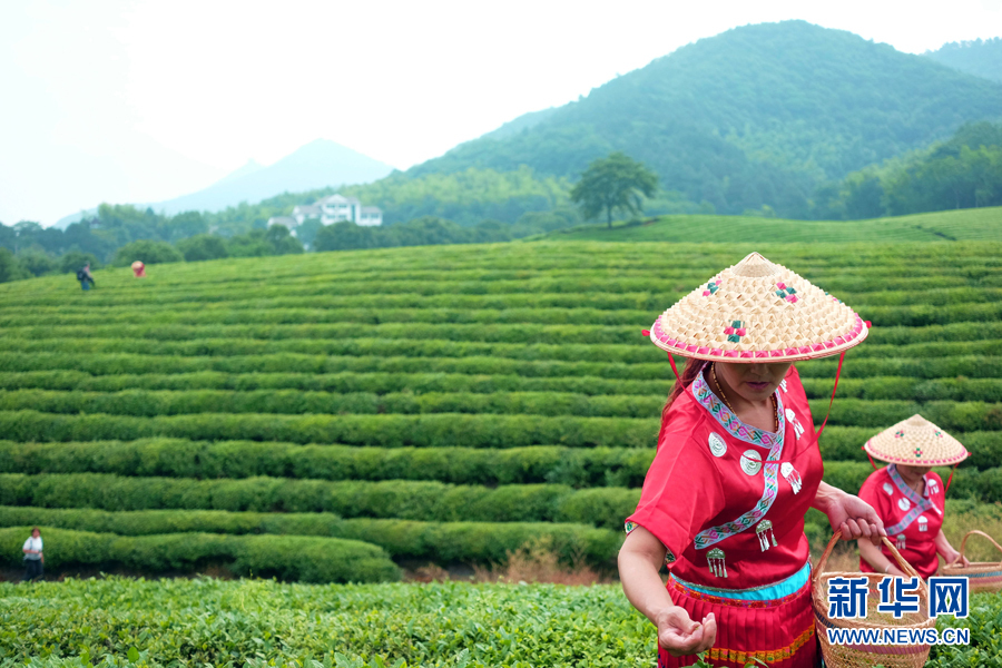 采茶工人采集夏茶。新華網(wǎng)陳俊松 攝