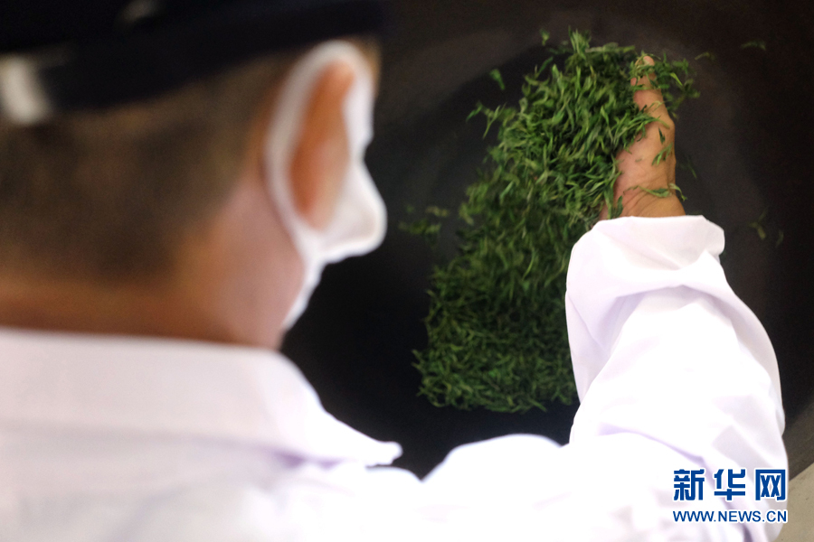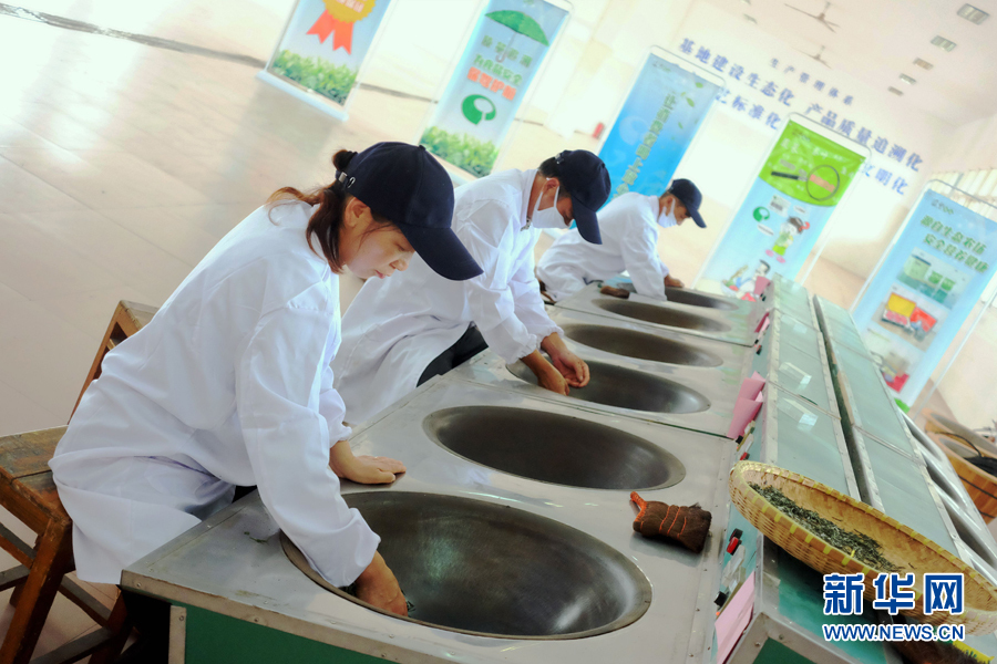 茶場工人翻炒茶葉。新華網(wǎng)陳俊松攝